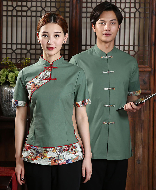• YDQT201206酒店工作服中式工作服服務(wù)員工作服咖啡廳工作服家政阿姨清潔工服務(wù)員工裝